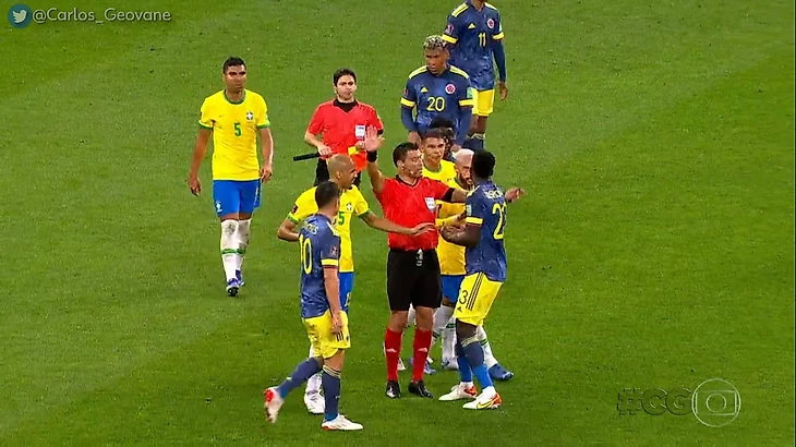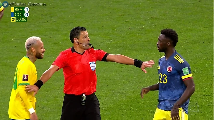 Обидную желтую карточку получил Каземиро. Да, фол был, игровой, но если за это давать карточки,то колумбийцы,что, должны были заканчивать уже первый тайм в меньшинстве? Это к вопросу о судействе, не стреляйте в пианиста-он играет в группе "Ласковый май"....