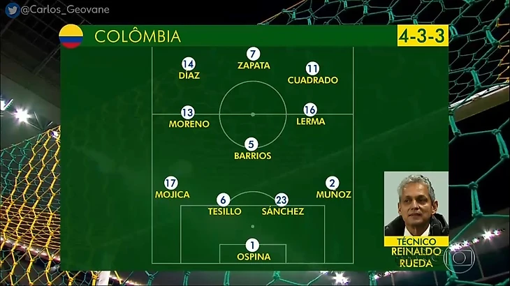 Состав Тите читался. Руэда же снова перестраховался,выставив 3 опорников и оставив "прощенного" Хамеса на лавке. Учитывая,что колумбийцы не забивали до этого 3 матча, выглядело странным, но Рейнальдо виднее.
