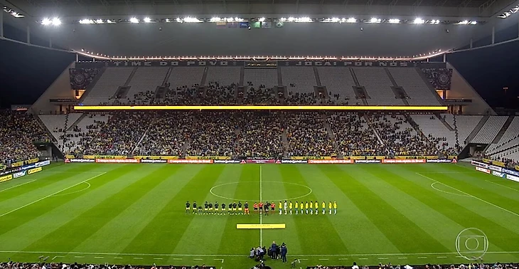 Унылая картинка на трибунах, правда? Так КБФ решил организовать первый матч со стопроцентной заполняемостью и в котором Селесао могла досрочно оформить билеты в Катар. Причина полупустой "Нео Кимики"- дикие цены на билеты. Самый дешевый билет на Колумбию стоил 300 реалов (60 долларов). К примеру посмотреть на Криштиану Роналду в отборочном матче к чемпионату мира стоило 94 реала (почти 19 баксов). На решающий матч Италии против Швейцарии можно было и вовсе попасть за 62 реала (12 долларов). В общем Кабокло из федерации ушел, идиотизм даже и не думает, у него абонемент и QR-код.