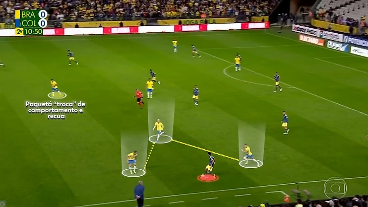 Кто-то назовет это 4-2-4. Но учитывая работоспособность вингера "Реала", Рафиньи и вышедшего ему на замену Антони это все же старая добрая 4-4-2. И хорошо что в составе у Тите есть такой кадр как Пакета, позволяющий безболезненно менять комбинации и могущий выполнить роли и созидательного и оборонительного толка. Безусловно это находка и уже сейчас один из лидеров сборной вообще