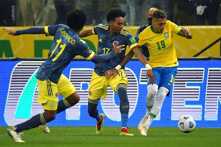 За 2 минуты до конца все вопросы о победителе мог снять Винисиус. Разгон атаки из глубины,шикарный пас от Неймара, который не все силы потратил на пререкания с судьей и колумбийцами, выход на рандеву с Оспиной. И решение в духе Винисиуса еще годичной давности-ни два, ни полтора. Пробей в касание над вратарем и все, вопрос о победителе был бы снят. Хотя и колумбийцы не сподобились даже на финальный навал, точнее парни Тите не позволили, не выпуская мяч из ног. А настырный Кунья на 90-ой минуте как по мне заработал пенальти. По крайней мере с такой силой не выбивают из-под ног, да еще и под удар Антони. Но ни судья,ни ВАР этот эпизод не стали тщательно разбирать. А ракурс с трансляции мог быть обманчивым.