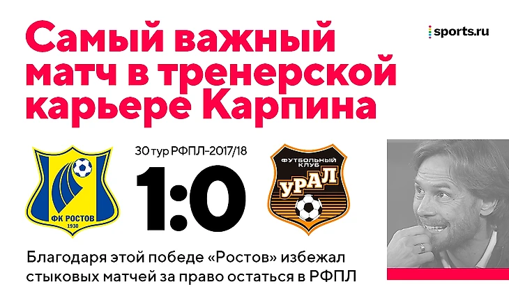 Перед Карпиным с «Ростовом» работал Леонид Кучук – с ним команда за тур до конца первой части сезона-2017/18 шла на 10-м месте и четвертым показателем по пропущенным мячам (всего 17 в 19 турах). Правда, в таблице было плотно: от шестого места «Ростов» отставал на 5 очков, но и пятнадцатое опережал лишь на 6. Кучук ушел в отставку, «Ростов» обыграл «Уфу» (1:0) и ушел в отпуск.