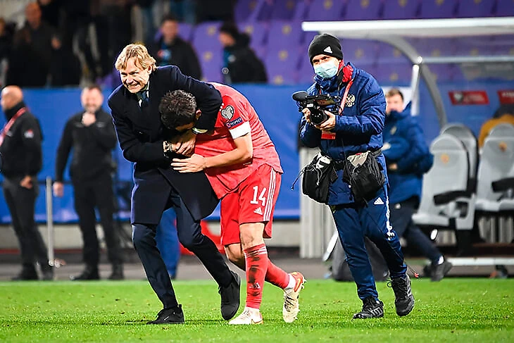 Правда, Россия не выключилась и вернулась в игру: сначала головой в раздевалку забил Яновский, а после перерыва на 55-й Мостовой положил со штрафного.