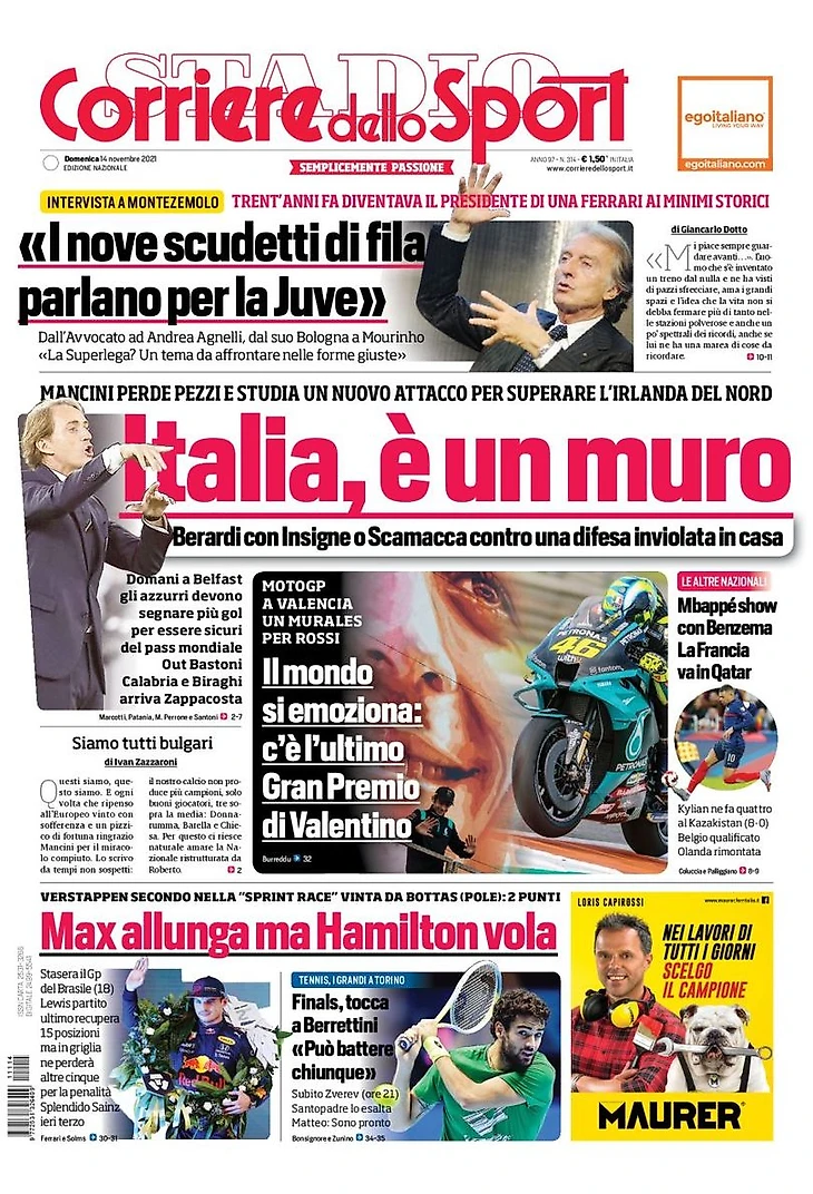 Италия, это стена. Заголовки Gazzetta, TuttoSport и Corriere за 14 ноября
