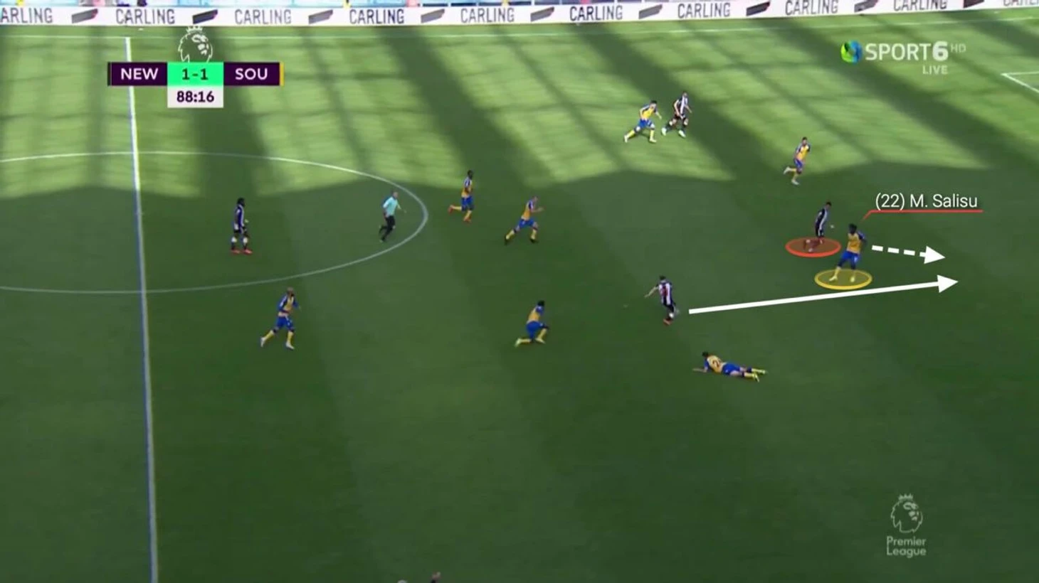 Еще один хороший пример умной игры со сторону Салису произошел при других обстоятельствах в матче с «Ньюкаслом», завершившимся со счетом 2-2.