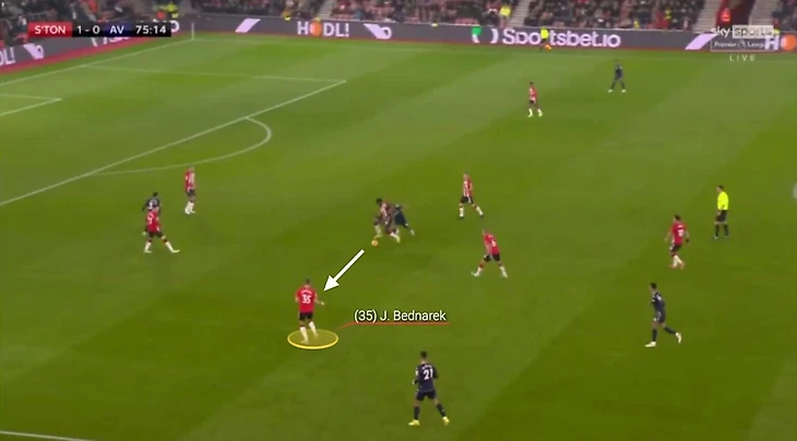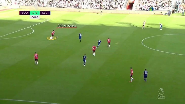 И когда пас идет направо, Салису уже на шаг впереди – он не только идеально выверяет момент для успешного отбора, но и отдает передачу вперед, начиная атаку «Саутгемптона».