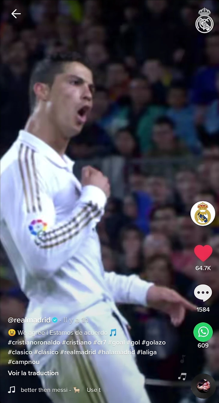 Ответ «Реала» – класс. Узнав об ошибке аккаунта «Барсы», тикток мадрицев залил гол Роналду из класико в 2012-м (сезон, когда «₽еал» стал чемпионом).