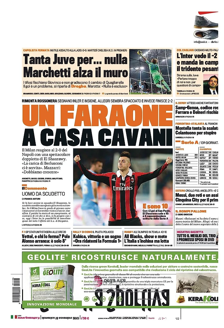 Голы: 4' Inler, 30' Insigne I, 44' e 82' El Shaarawy