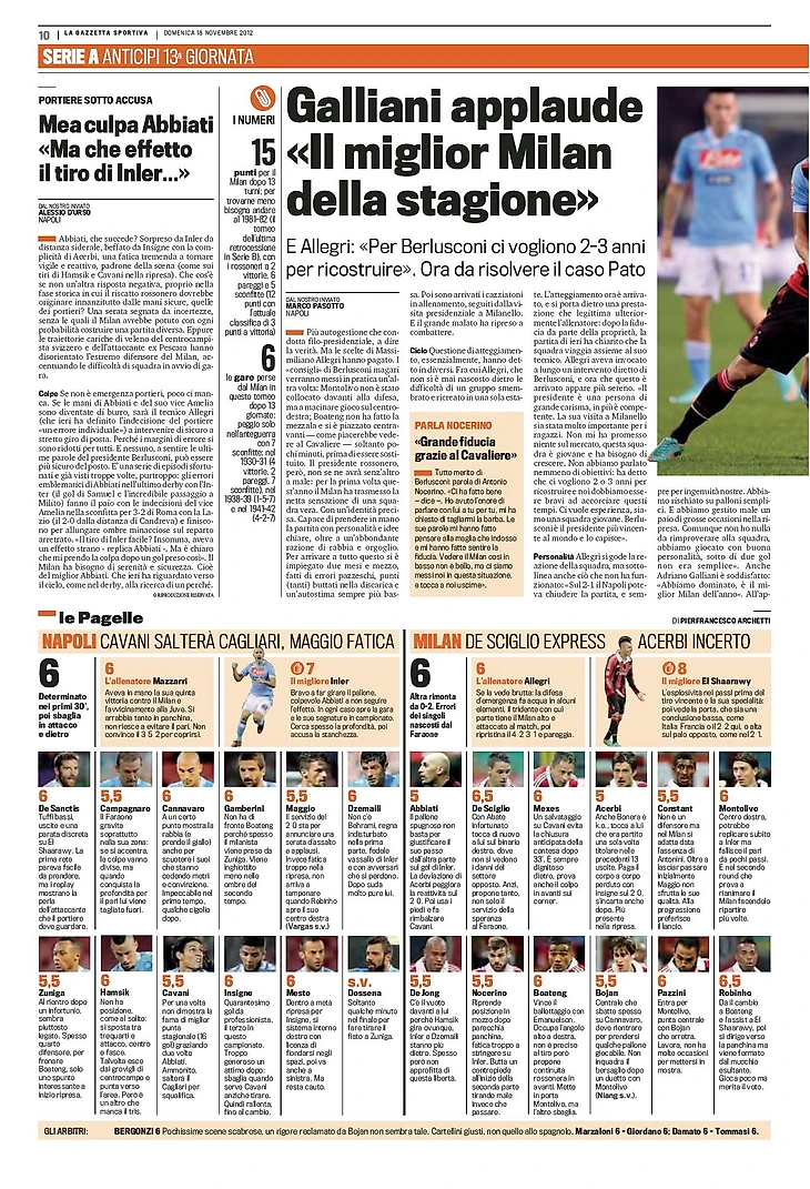 Макс Аллегри потерял нити контроля над командой, "Милан" обыграл только самых слабых в лиге - начали с двух поражений сезон. 13 тур - матч в Неаполе - Стефан Эль-Шаарави забивает два.