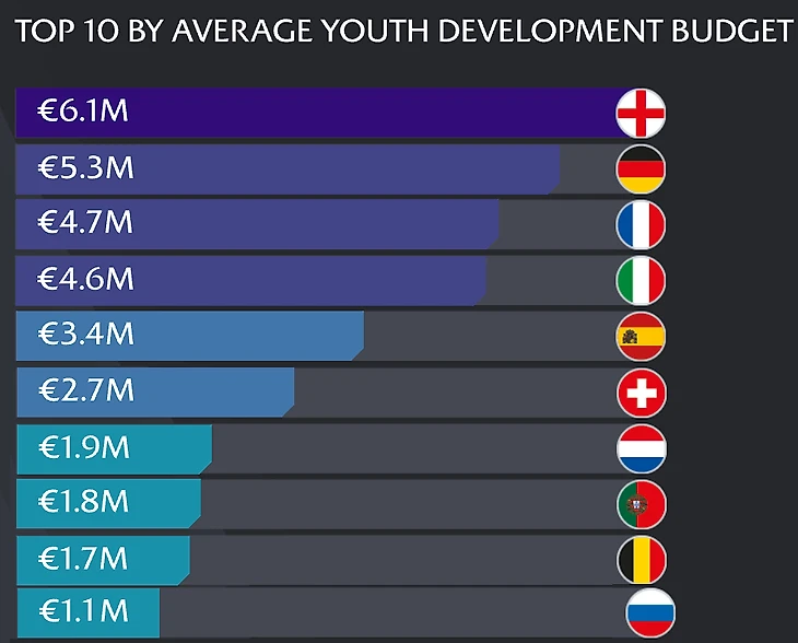 Согласно отчету, представленному УЕФА в январе 2021 года, Россия находится на 6-м месте по количеству средств, выделяемых клубами на развитие молодежных программ. Уступая только Англии, Германии, Франции, Италии и Испании. Согласно отчету УЕФА, клубы РПЛ в среднем тратят 2,6 миллиона евро на развитие академий. Но к сожалению все не так гладко.