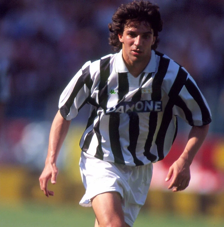 Сейчас уже не очень легко припомнить все детали. Знаю только, что обзоры иностранных чемпионатов я смотрел во все глаза чтобы, наконец, выбрать за кого же болеть. Английские и немецкие лиги были отметены почти сразу же. Друзья уже выбрали себе клубы оттуда, а значит надо было найти что-то своё. Так что выбор стоял между Ла Лигой и итальянской Серией А. Италия привлекла меня больше, все эти названия, фамилии, а колорит и эмоциональность били ключом даже в коротеньких выпусках обзоров. Красота голов и жесткость борьбы дополнительно подчёркивались дикой итальянской страстью. В общем, вопрос стоял только в том, кого же выбрать для себя. Как это часто бывает, всё решилось в мгновение ока и навсегда, минуя рассудочную часть. Зима, декабрь, Владимир Иванович рассказывает о принципиальном противостоянии в Италии, где Фиорентина приехала в гости к своему заклятому противнику туринскому Ювентусу. Гости повели 2:0 и, признаюсь, в тот момент я был очень близок к тому, чтобы стать фанатом флорентийцев. Всё изменил лучший гол, который я когда-либо видел. Даже сейчас, спустя без малого 30 лет, сотни матчей, тысячи голов, тот гол остаётся номером один в моём личном рейтинге красивых мячей. Как вообще оценить красоту? А в футболе? У всех свои критерии. Насколько красив гол Марадоны англичанам? А Месси Баварии? А Роберто Карлоса французам? Что красивее одиночный проход через половину команды соперников с закатыванием мяча в пустые ворота или немыслимый пушечный либо ювелирный удар по немыслимой траектории? Какое проявление гениальности более ценно? Та длинная, высокая передача почти от центра поля, от бровки в направлении невысокого парня в окружении высокорослых центральных защитников, не должна была таить в себе особой опасности. Защитники спокойно снимают такие мячи, это их хлеб. Превратить такой пас в гол это само по себе искусство. Парень же с пышной шевелюрой вспыхнул сверхновой чистого гения, мгновением невозможного решения с безупречным, без единого изъяна, исполнением. До сих пор, пересматривая тот гол, я не представляю, как такое можно придумать за мгновение, что у него было. Алессандро Дель Пьеро принёс победу в принципиальном матче, команде проигрывавшей 0:2, несмотря на чудивших по полной судей, ударом, который невозможно повторить. Думаю именно в тот момент моё сердце окрасилось в чёрно-белые полоски навсегда. Момент для такого выбора оказался удачный и вскоре я с упоением смотрел победный финал ЛЧ, зачитывал до дыр выпуски Спорт-Экспресса о любимом клубе и, особенно, о его восходящей суперзвезде. Быстроногий технарь, с безудержной фантазией и креативом, безупречной техникой, ударом с обеих ног и характером лидера стал надеждой всей Италии. Дель Пьеро было трудно не любить или хотя бы не уважать. Он не звездился, не сбавлял требовательности к себе, не брал на себя больше, чем мог сделать. А главное, он не переставал творить. Великий Avvocato, Джанни Аньелли, судьбоносная для Ювентуса фигура, очень ценил Дель Пьеро и, с привычной для него точностью, дал Але прозвище Пинтуриккьо. Как и живописец, Алессандро своей игрой чаровал и влюблял болельщиков и специалистов. Он отобрал своё место на поле у самого Баджо, завоевал право на десятый номер на спине и капитанскую повязку. Дель Пьеро продолжал расти и совершенствоваться, замахиваясь на величие абсол