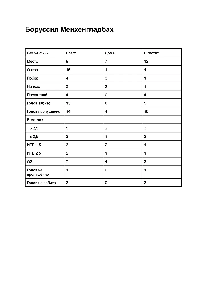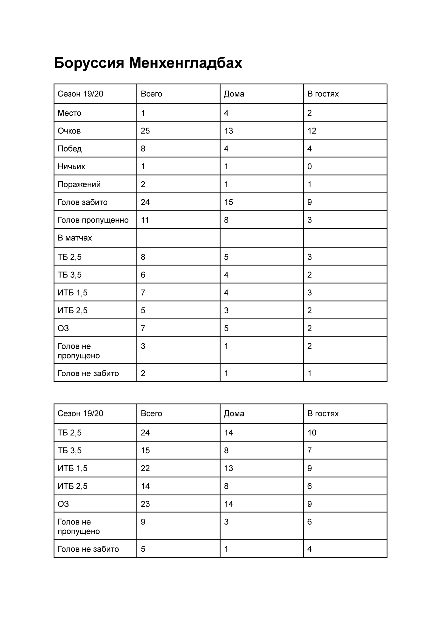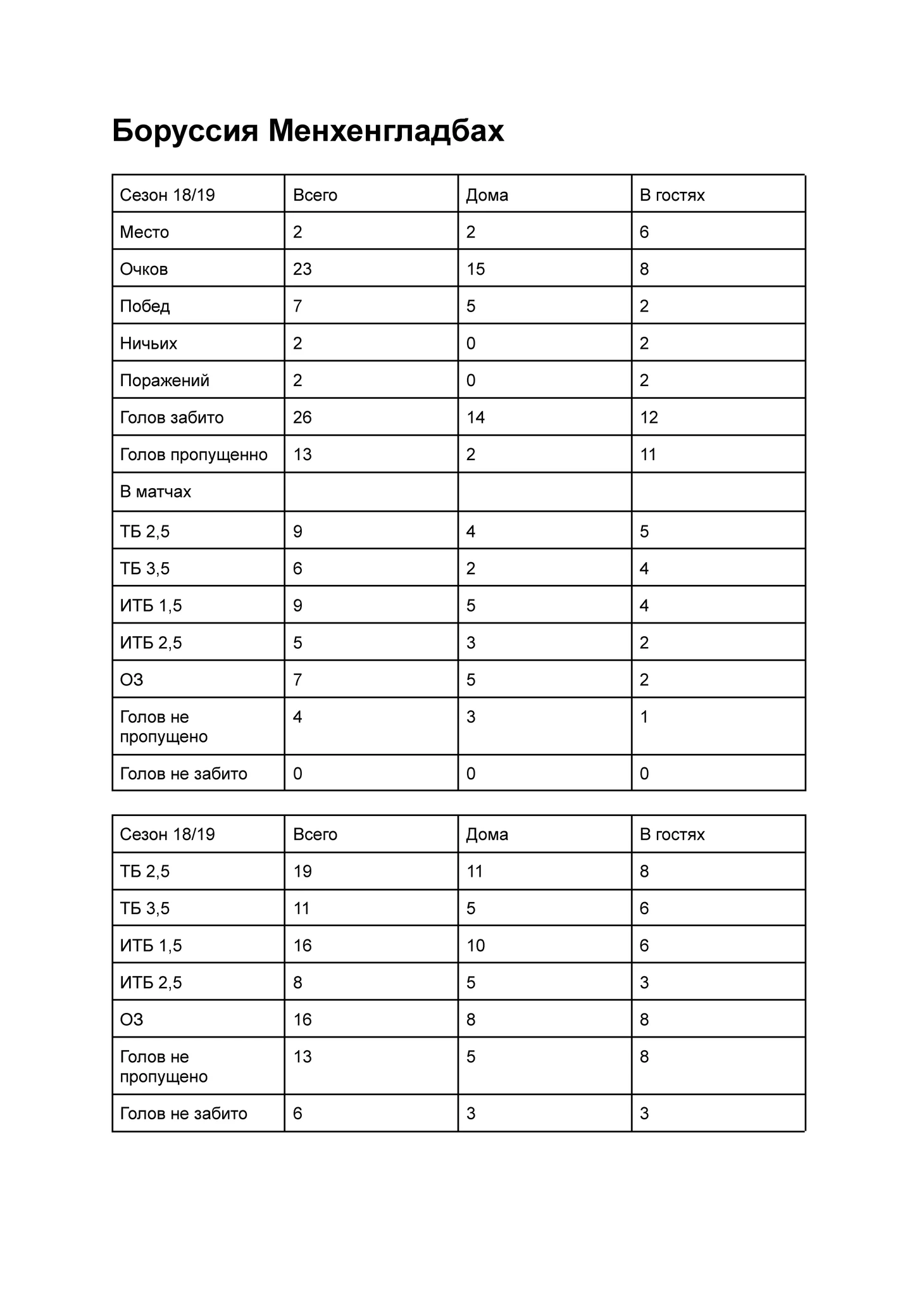 У Боруссии хорошие статистические показатели, команда в среднем находится в пятерке, cитуация на выезде, лучше чем дома. Давайте теперь рассмотрим результаты к которым привели эти показатели: