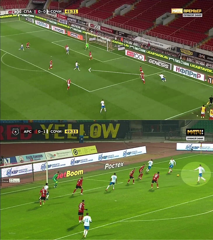 Следующая игра – со «Спартаком». Юсупов, прессингуя, спровоцировал несколько потерь москвичей при розыгрышах от ворот. В игре против «Динамо» Артур забил еще – открылся под Нобоа и пробил в дальний угол из штрафной.