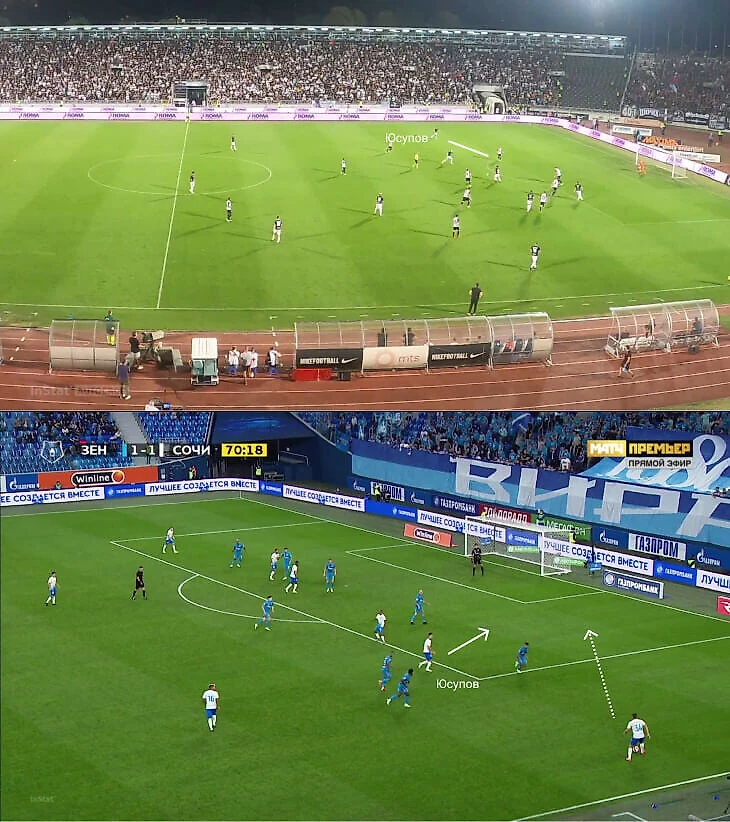 Главное в этих моментах – умелая игра на линии с защитниками. В случае с «Зенитом» Юсупов классно рванул за спину, в остальных – расширял пространство, получая мяч на расстоянии от соперников.