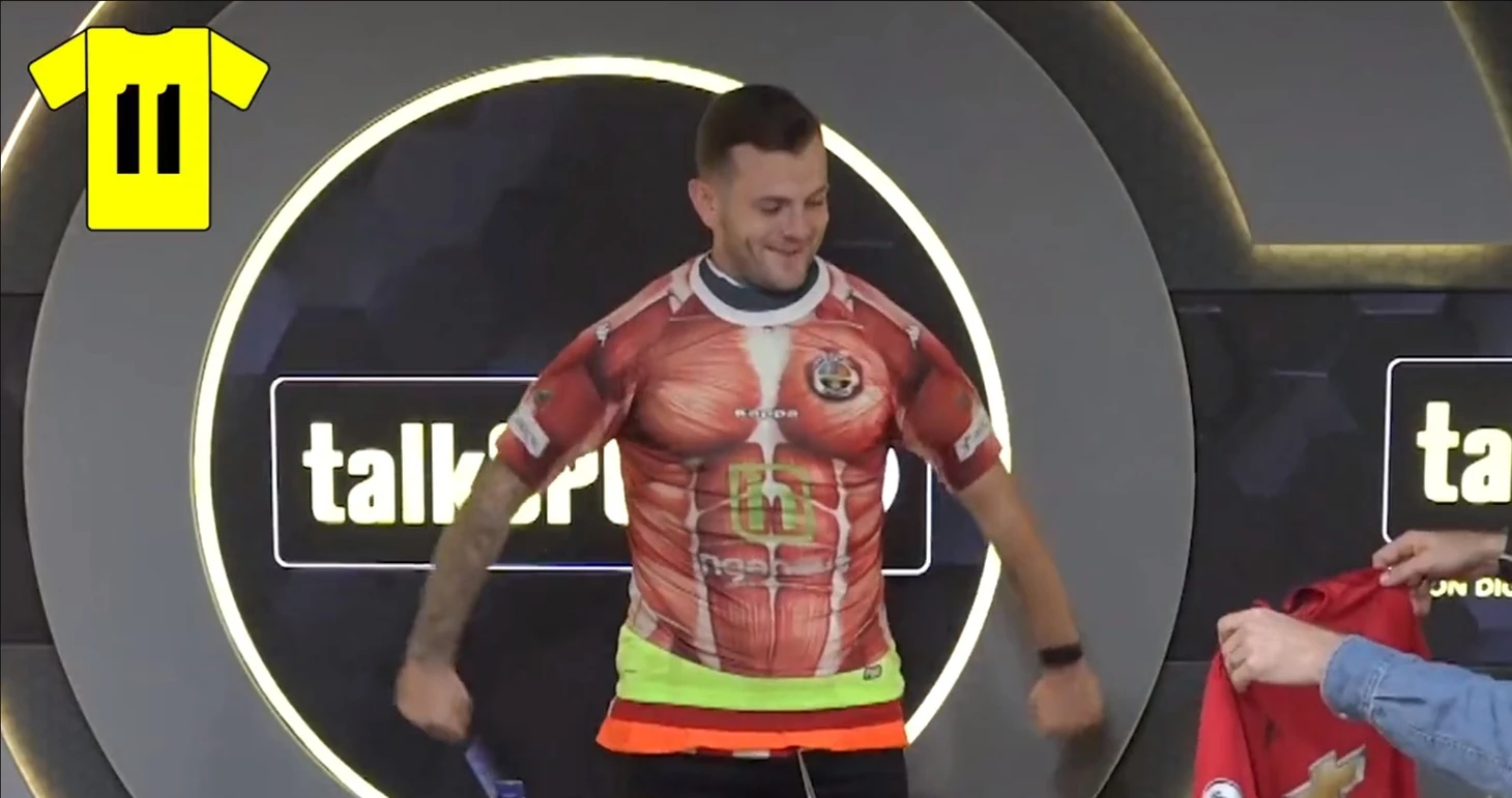 А еще у Джека есть время участвовать в разных шоу. Например, он пришел на подкаст к TalkSport, где ему предложили побить рекорд по количеству футбольных джерси, надетых одновременно.