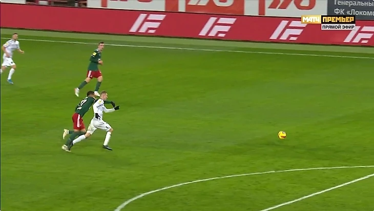 На 34-й минуте защитник «Локо» Мурило получил прямую красную за фол последней надежды.