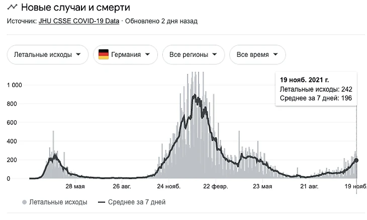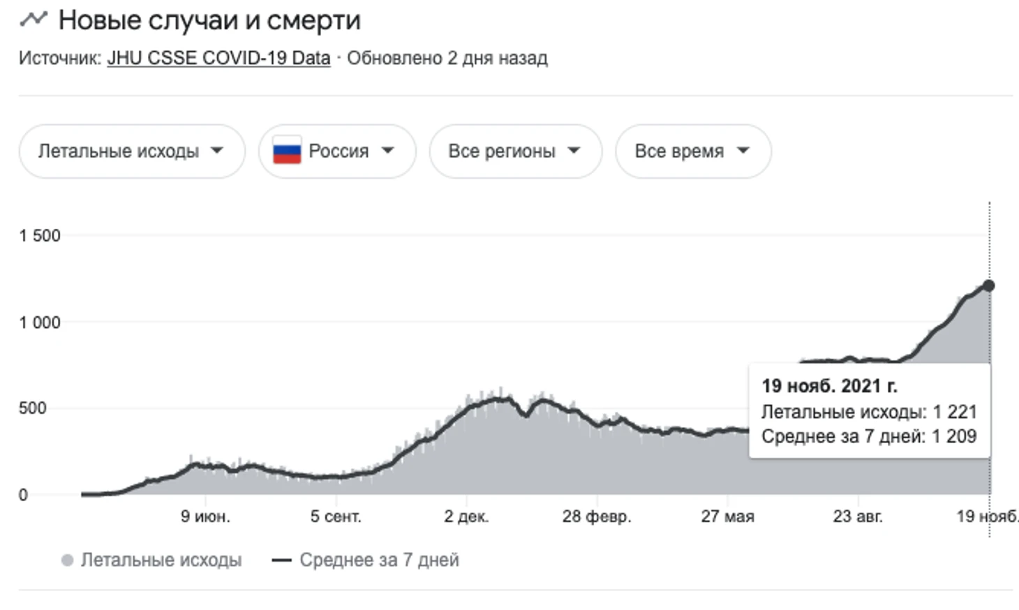 Для сравнения: в России смертность примерно в 6 раз выше, хотя новых случаев фиксируют даже меньше.
