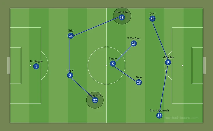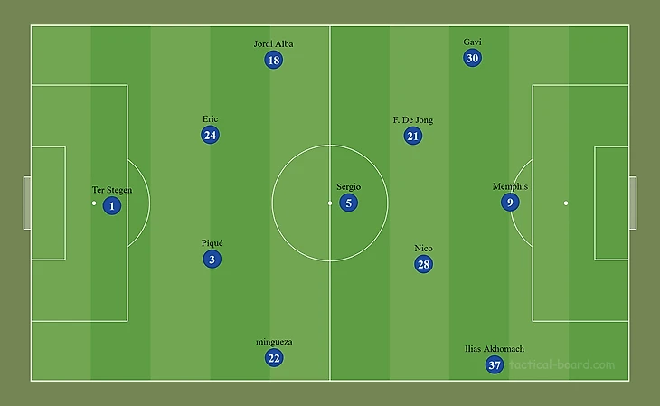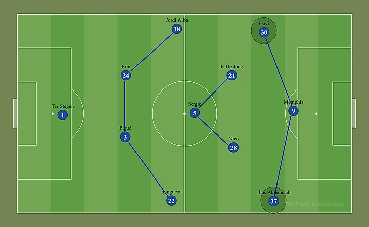 В атаке из-за отсутствия Фати и Дембеле вышли Гави и Ильяс Ахомаш, составив компанию Мемфису.