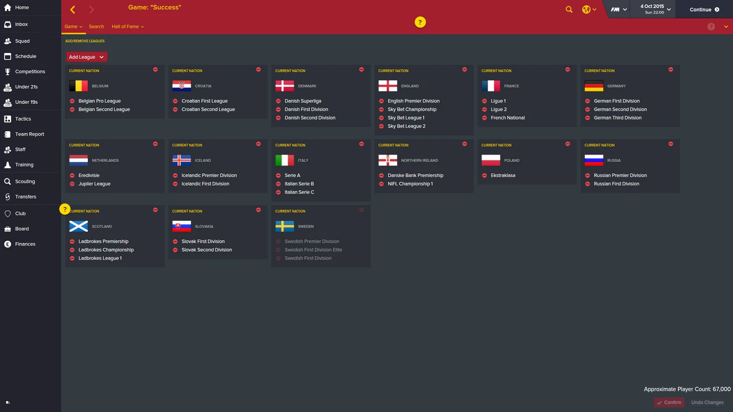 Вот список лиг, в которых я потенциально могу начать работать. С учётом того, что я воссоздал свой жизненный профиль и самую ужасную лицензию, выбор особо не велик, и я понимал, что позовут меня скорее всего в аутсайдеры 2-3 Дивизионов.