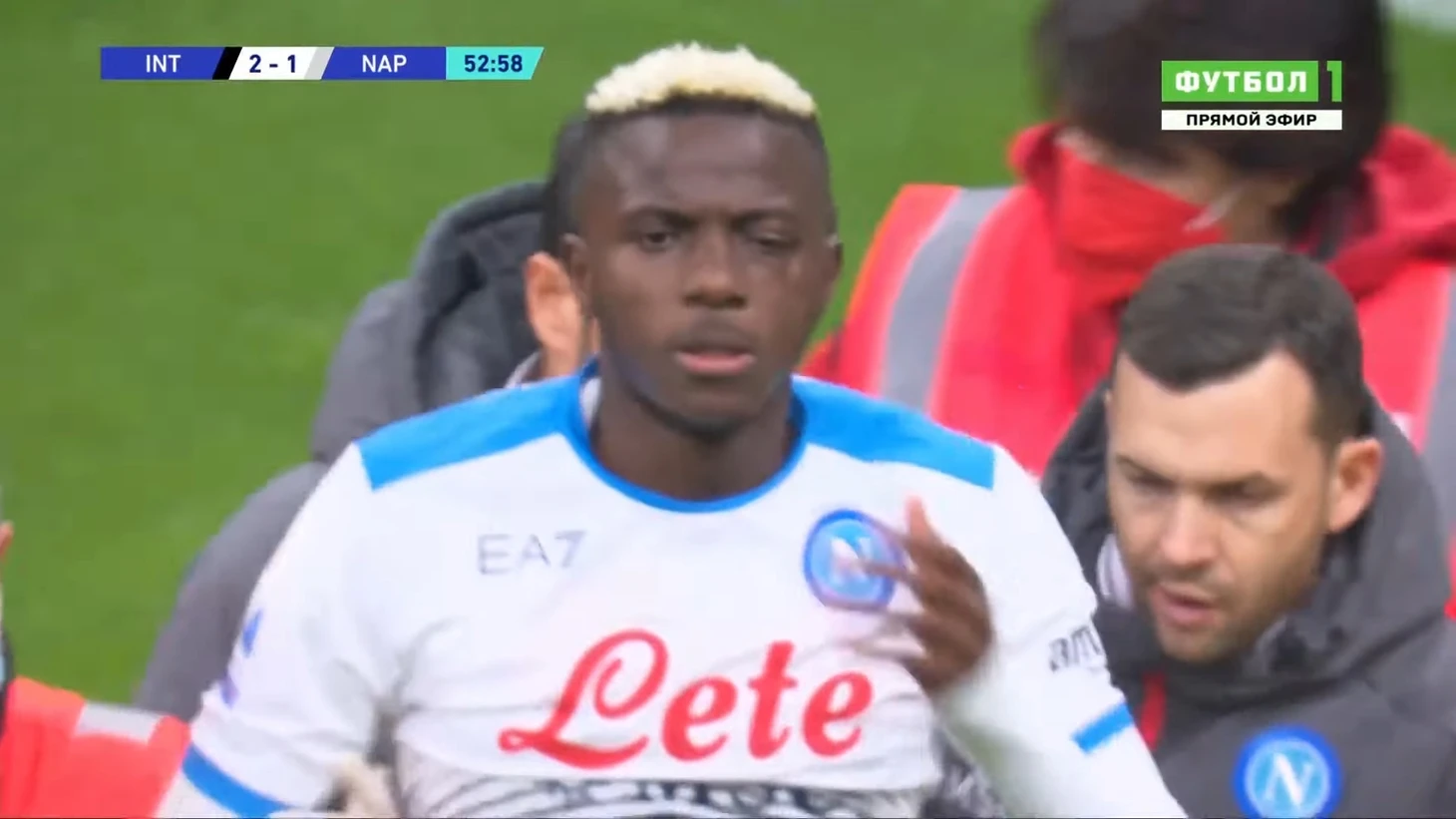 Еще до гола Лаутаро в воздухе столкнулись Милан Шкриньяр и Виктор Осимхен – словак отделался легким испугом, а вот нигериец выбыл надолго.