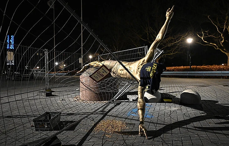 Сначала было хулиганство: на голову бронзового Ибрагимовича надели мусорный пакет, на руку нацепили сидушку для унитаза, обмазали краской и написали, что статую лучше убрать. А на доме Златана в Мальме писали: «Иуда»