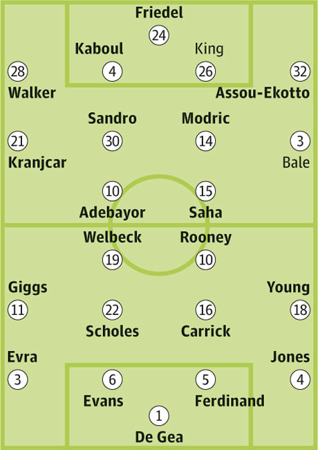 Под вопросом: Кинг (травма колена), Бэйл (травма подколенного сухожилия), Галлас, Ван дер Ваарт (оба - травма голеностопа)