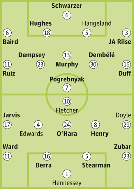 Запасные: Эллиот, Харпер, Гатри, Гослинг, Обертан, Перч, Абейд, Бен Арфа, Фергюсон, Ловенкрандс, Рейнджер