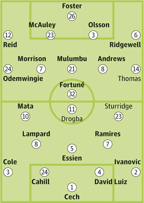Запасные: Тернбулл, Илариу, Бертран, Ромеу, Микел, Мейрелеш, Малуда, Торрес, Калу, Хатчинсон, Феррейра, Лукаку