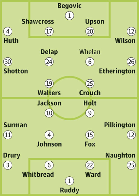 Оба новичка «Норвича», приобретенные этой зимой, могут дебютировать на «Британнии» за свою новую команду. Бывший капитан «Лидса» Джонни Хоусон восстановился от трамвы колена и уже даже провел матч за резервынй состав, а Райан Беннетт вернулся из краткосрочной аренды в «Питерборо». Оба, скорее всего, начнут матч на скамейке против «Стока», которые в прошлом туре прервали серию из четырех поражений.
