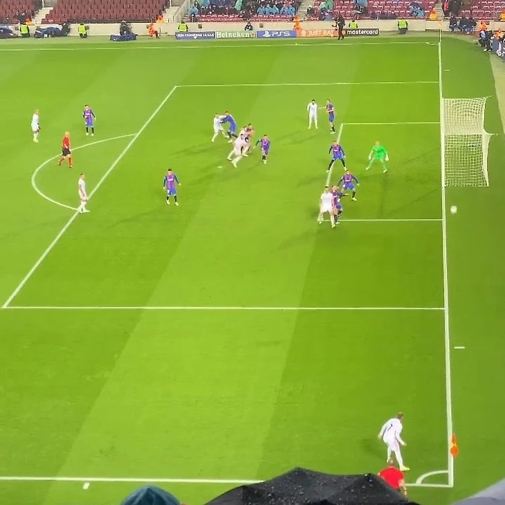 С самого начала Хави решил удивить стартовым составом. Эрнандес выпустил трех центральных защитников, но при этом, казалось, забыл выставить правого. Ни УЕФА, ни спортивные порталы, кажется, так до конца и не разобрались, что за схему придумал каталонец: рисовали то 4-3-3, то 3-4-3, то 3-5-2. Забегая вперед, отмечу, что даже после матча не стало понятнее: «сине-гранатовые» постоянно перемещались. Нико периодически оказывался правым латералем, а Де Йонг — центрфорвардом, Араухо пару раз залетал в штрафную с мощнейшим ударом, в то время как Демир, списанный было из клуба, то пер по центру, то в стиле Лео смещался с правого края.
