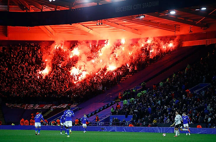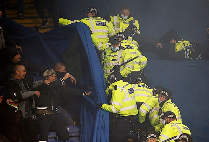 Поляки сошли с ума в Лестере: пронесли арсенал пиротехники и прыгнули сектором на полицию