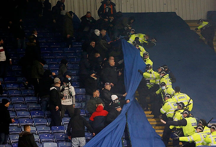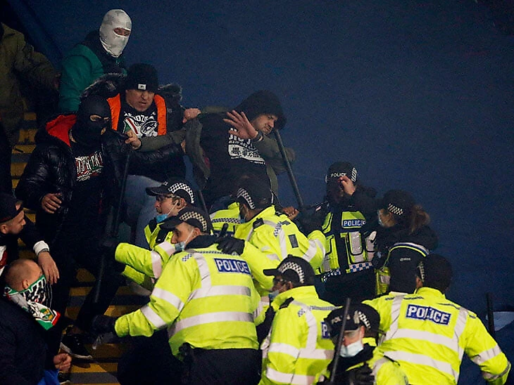 Полиции даже пришлось ввести на трибуны дополнительные силы в специальном обмундировании для подавления беспорядков.