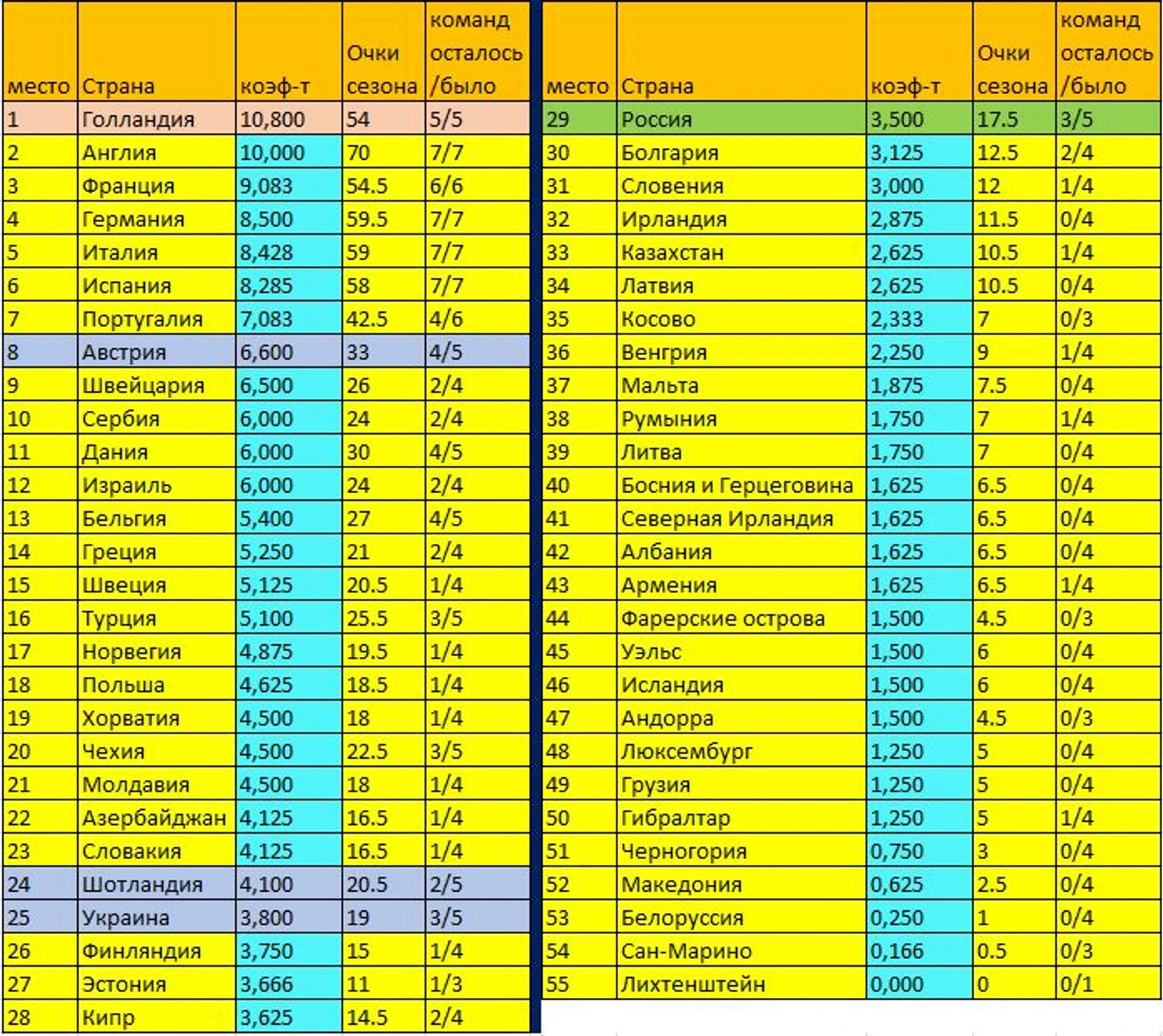 Далее традиционная таблица набранного коэффициента сезона. Сортировка по коэф-ту.