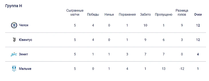 К сожалению , группа получилось такой же предсказуемой , как и группа А , буквально был и есть один вопрос:»Челси или «Юве» займёт 1 место» .»Зенит» показал намного лучше игру , нежели в прошлом сезоне , но до плей-офф далековато , а вот Лига Европы уже ждёт «Сине-бело-голубых» с распростёртыми руками. Единсвтенное , что можно сделать , так это подпортить настроение «Пенсионерам» , ведь в последнем туре «Зенит» будет дома принимать «Челси» , а «Юве» ждёт в гости «Мальме» .