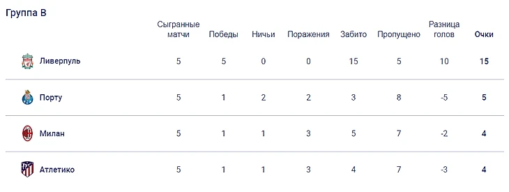 Группа B ( Бэ) на стадии жеребьёвки казалось непредсказуемой:2 гранда (извини Милан) и 2 крепкие команды . И если в выходе «Ливерпуля» было немного сомнений , то второй командой на бумаге был «Атлетико» или «Милан» . А что мы увидели на деле? Мы увидели «Ливерпуль» , который катком прошёлся по всем , взял 5 побед и довольный отправился в плей-офф за 2 тура . Увидели «Порту», который навязал борьбу итальянцам и испанцам и оставил шансы в последнем туре на выход в ЛЧ или ЛЕ . Группа получилось интересной , матчи зрелищными и непредсказуемыми , но тем интересней будет смотреть последний тур , в котором буквально решается , кто вместе с «Мерсисайдцами» идёт дальше , кто – в ЛЕ , а кто – домой . В последнем туре «Милан» дома принимает «Ливерпуль» , а «Порту» – «Атлетико» . Будет интересно!