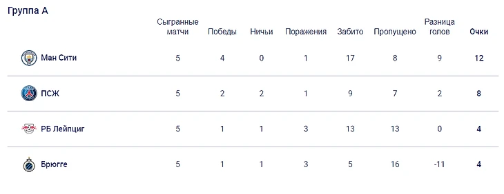 Данная группа казалась крайне очевидной , было только два вопроса:»ПСЖ или Сити ?» и «Кто попадёт в ЛЕ?» – где-то в глубине души была вера , что может что-то изменится: «Быки» навяжут борьбу или «Брюгге» огрызнётся . Но всё оказалось достаточно просто . «Париж» на выезде с андердогами потерял очки , а в решающем матче:дома у «Сити» с первых минут ушёл в тотальную оборону , гол Мбаппе, не самый справедливый конечно, дал надежду, но ненадолго .