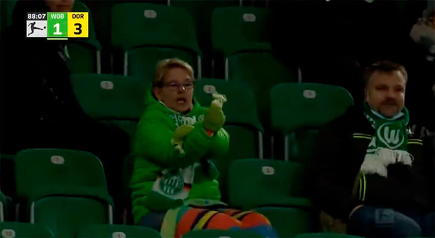 Во время празднования случился забавный эпизод: норвежец показал пальцем на трибуну, где сидели болельщики «Вольфсбурга», а одна из фанаток не растерялась и ответила ему не очень приличным жестом.