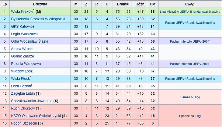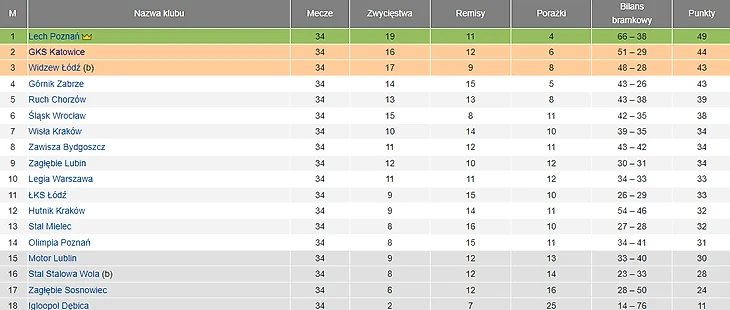 Если обратить внимание не только на XXI-ый век, можно заметить, что после окончания Второй мировой войны «Легия» лишь дважды финишировала ниже 9-го места. Первый раз это случилось в 1950-ом году, когда «Легия» еще не обладала такими возможностями, как сейчас. Тогда варшавяне финишировали на 10-ом месте, последнем, гарантирующем сохранение прописки в элите. Только по дополнительным показателям «CWKS» (аналог «ЦСКА») опередил бытомский «Гурник».