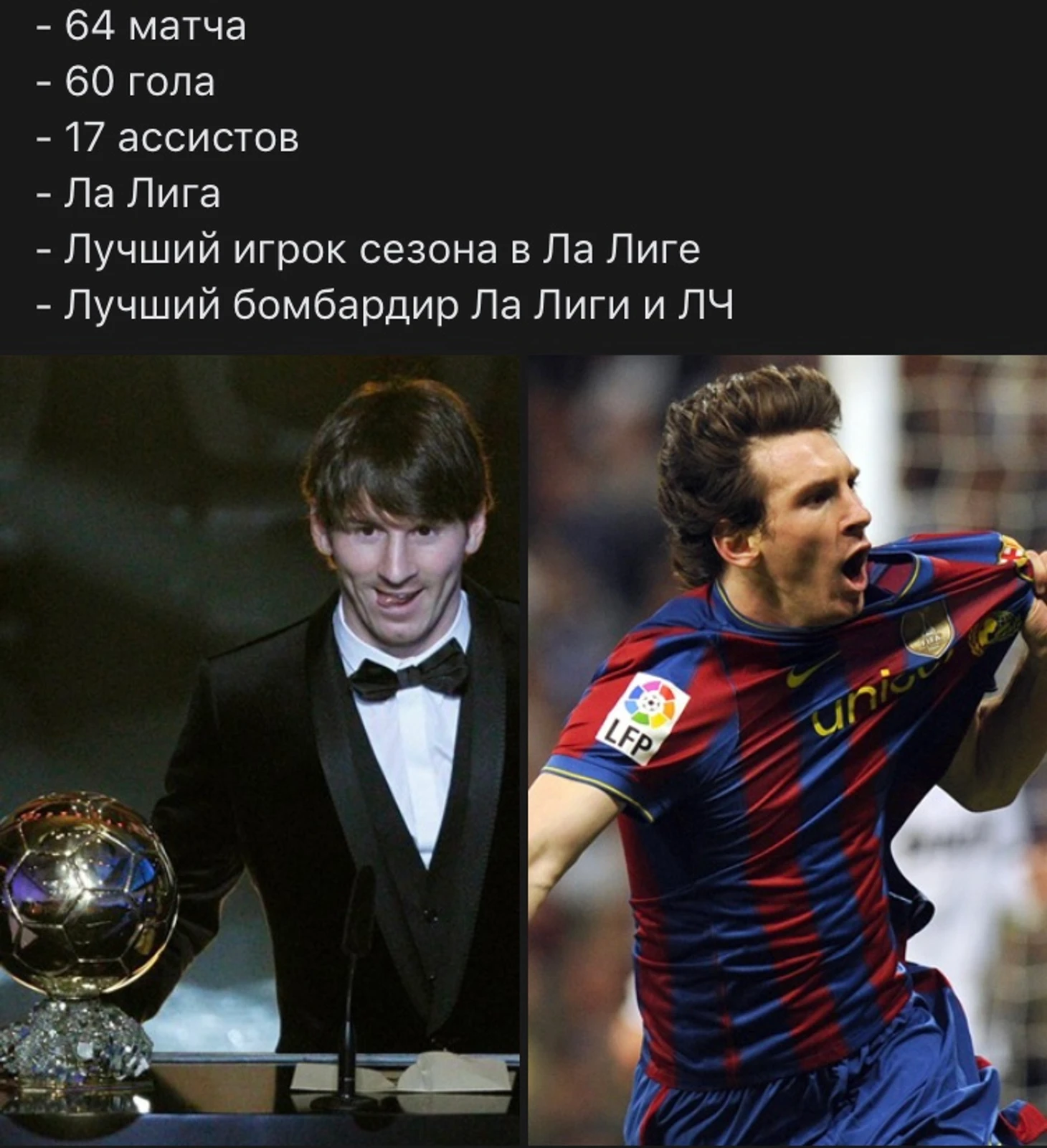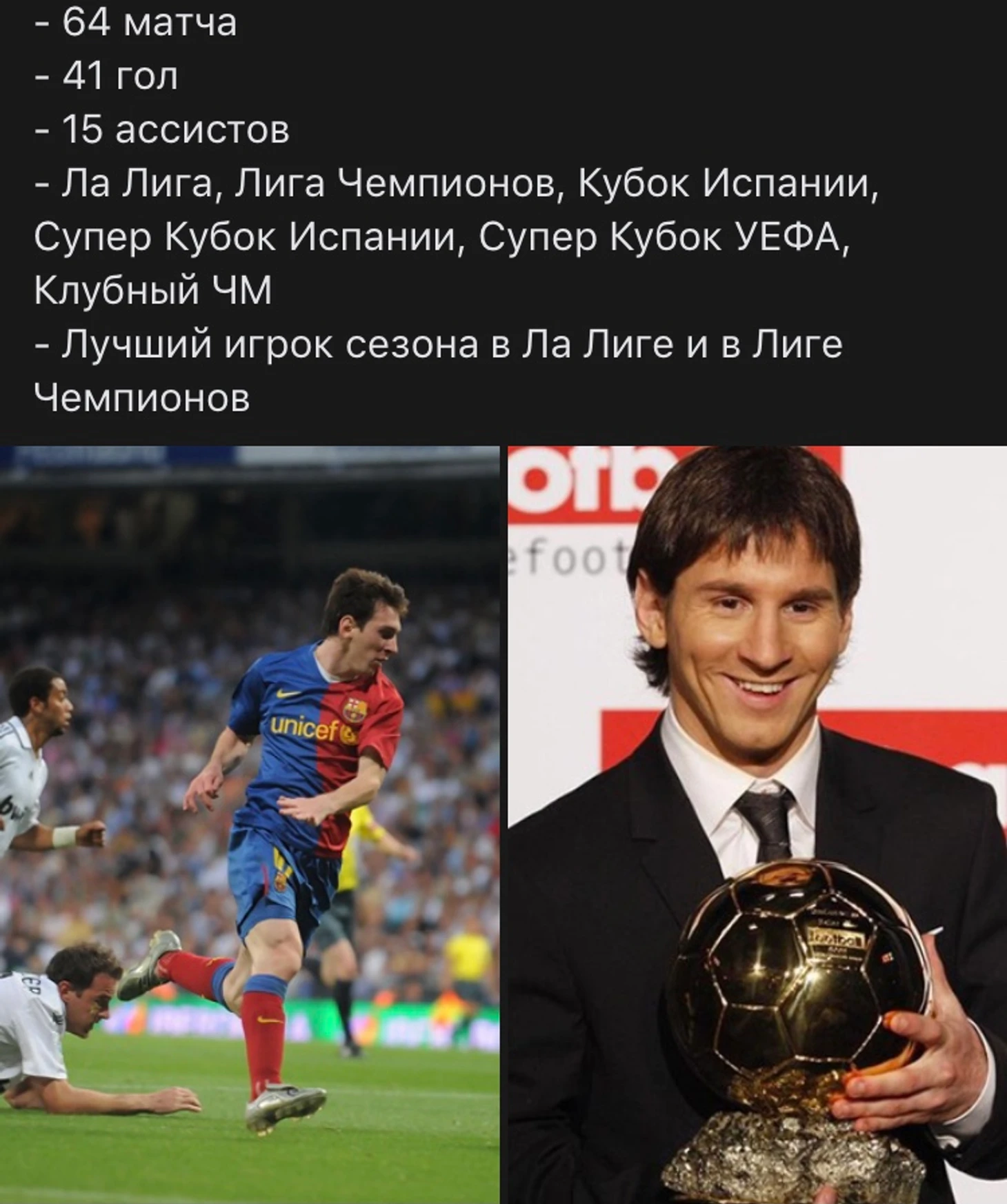 2009 год. Юный Лео в возрасте 22 - лет получает от журнала ,,France Football,, свой первый Золотой Мяч.