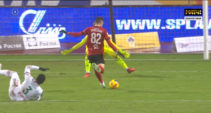 Хлусевич мог забивать и в другом похожем эпизоде, до того, но при передаче Аяза Гулиева все-таки немного залез во «вне игры»: