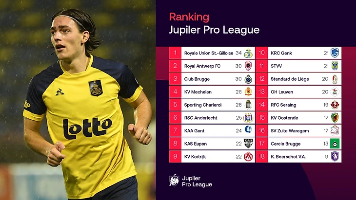 Турнирная таблица чемпионата Бельгии по итогам 16-го тура