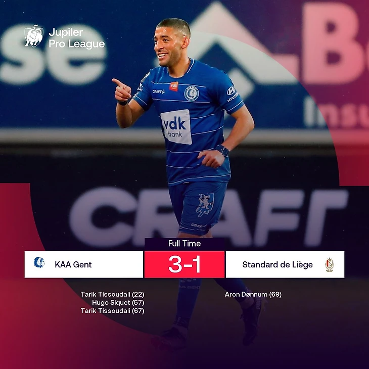 2. Тиссаудали был великолепен. Если уж «Гент» якобы мог забить шесть или семь мячей, то четыре или пять из них должны были быть на счету Тарика. Но победный дубль – тоже неплохо. Второй гол Тиссаудали – конфетка: форвард ложным замахом расправился с Лайфисом и с правой уложил мяч под дальнюю штангу. И это на поле, состояние которого, мягко говоря, оставляло желать лучшего. «А я много играл на любительских полях, поэтому такой газон для меня – даже преимущество», – говорит Тиссаудали. Он согласен с тем, что должен забивать больше: «Да, я пока еще не форвард-убийца. Буду работать над собой, чтобы однажды стать лучшим бомбардиром. Естественно, я не достигну результативности Роналду, но стать лучше пусть даже на 10 процентов – уже что-то». А ведь Тарик уже очень хорош. В понедельник он стал лауреатом «Бельгийского льва» – премии лучшему игроку Про-Лиги арабского происхождения по итогам календарного года. Тиссаудали родился в Нидерландах, но у него марокканские корни. В прошлом он играл за молодежную сборную Марокко.