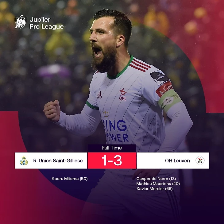 Лидер таблицы «Юнион» сыграл как обычно интенсивно, но при этом не был столь же эффективен в атаке и ошибался в обороне. «Левен», наоборот, тут же пользовался оплошностями соперника и не почти не позволял ему создать реальную угрозу у собственных ворот. Гости куда реже владели мячом, зато быстро и умело им распоряжались. Тройная замена у «Юниона» в концовке не сработала. Как итог – неожиданная, но вполне заслуженная победа «Левена», благодаря которой он поднялся на 13-ю строчку. «Юнион» остается на вершине, но вот отрыв от «Антверпена» сократился до четырех очков, поскольку ближайший преследователь позже разгромил «Остенде» (об этом матче – ниже).