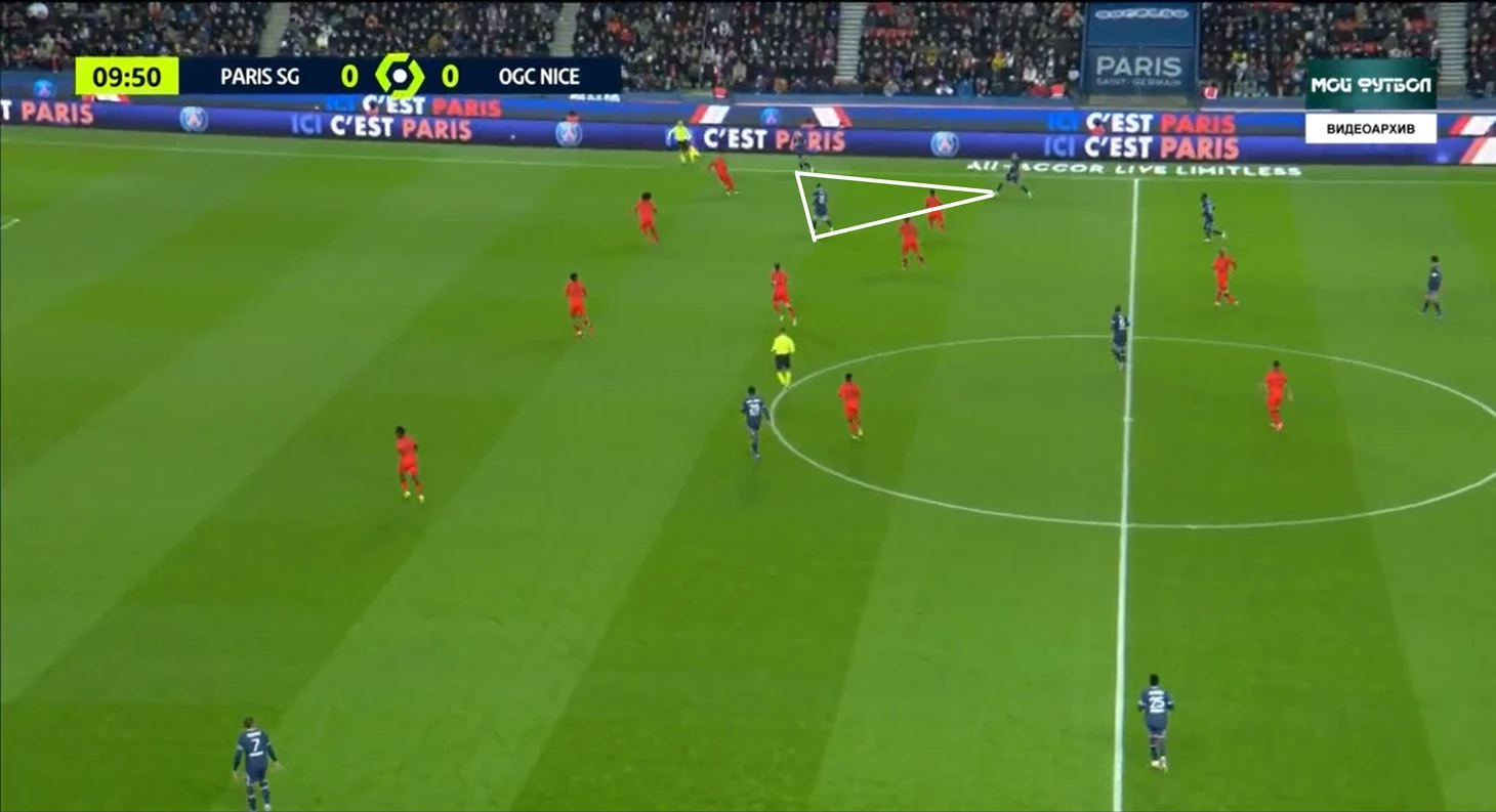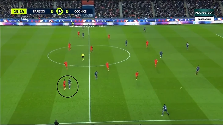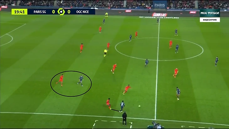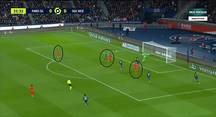 4. Игроки Ниццы хорошо передавали друг другу соперников. Когда защитники ПСЖ разыгрывали мяч Лотомба играл по Мбаппе.