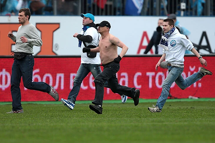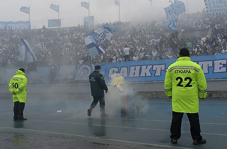 «Зенит», который больше всех рассказывал об успешном опыте использования стюардов и ЧОП на «Петровском», в мае 2014-го остро почувствовал недостатки системы. В матче предпоследнего тура против «Динамо» на поле выбежали сотни фанатов с «Виража», сорвали матч (клуб получил техническое поражение – 0:3), а один из них – Гулливер – ударил по лицу Владимира Граната.