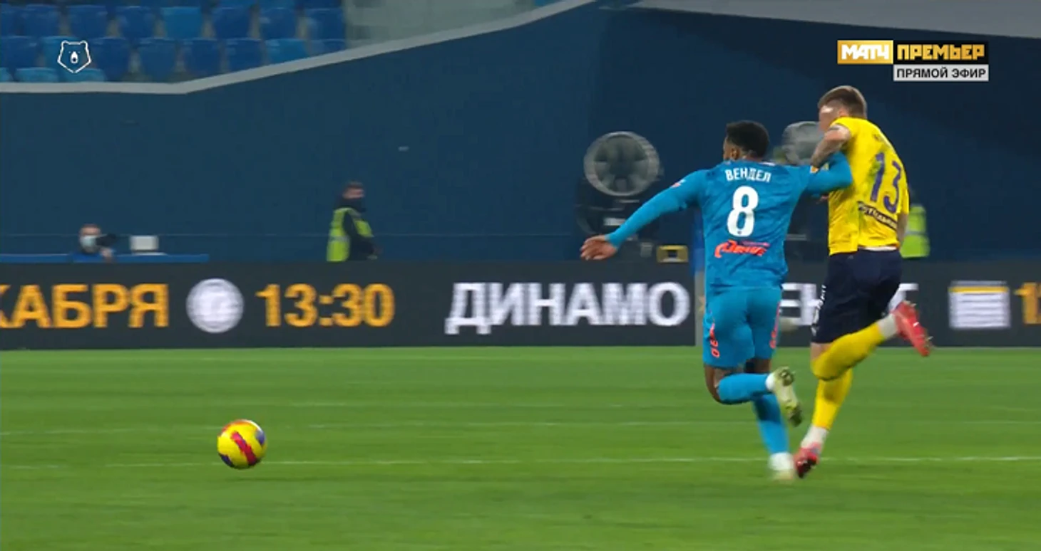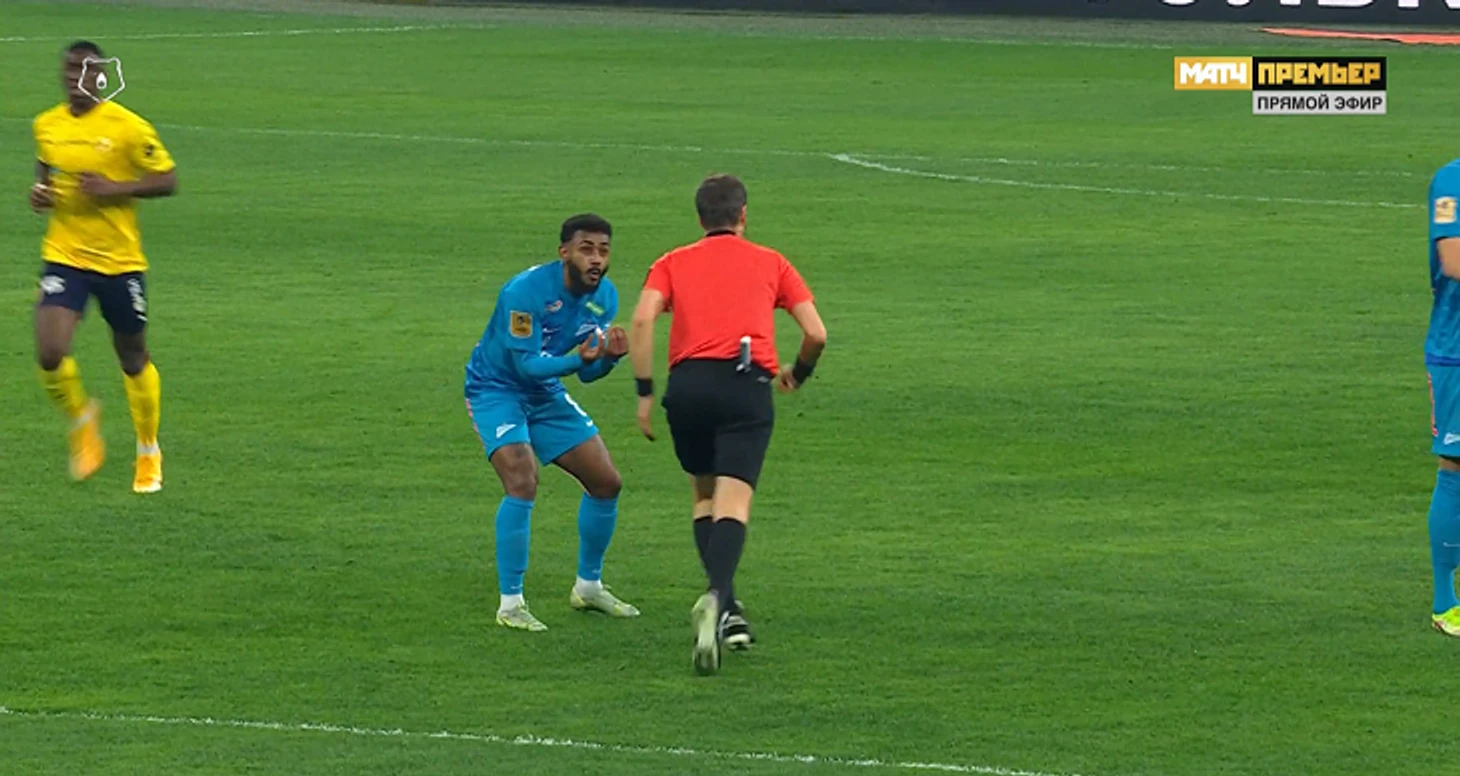 Все началось с углового гостей. «Зенит» отбился, и Вендел убежал в контратаку, но потерял мяч в районе центрального круга. Впрочем, бразилец не согласился бы с такой формулировкой. Он активно жестикулировал, показывая Алексею Матюнину, что его задержали.