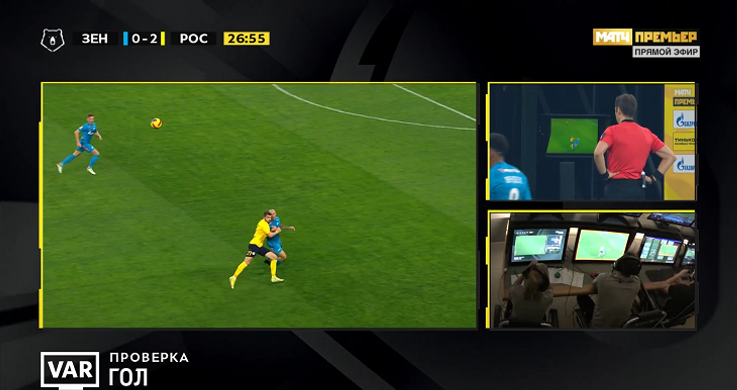 ВАР-ассистенты засомневались в решении Матюнина, несколько минут совещались (за это время он дал желтую Ракицкому за разговоры) и позвали его к монитору. Правда, арбитр, посмотрев повтор, убедился, что нарушения не было.