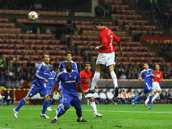 Подробно пересказывать этот матч не буду, вы наверняка неоднократно читали про него, смотрели обзор, а может даже и саму игру целиком. Челси в «Лужниках» переиграл МЮ по ударам в два раза (24 против 12), но пропустил первыми. Забил конечно же Роналду в прыжке, головой замкнув подачу.