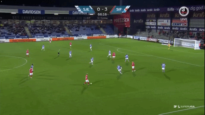 3) Навыки плеймейкера. В силу специфики футбола "Силькеборга", Карстенсен не так высоко играет в атаке, как умеет делать это. Потенциал просто чудовищный. В сборной он выдаёт невероятные 9.16 передач в финальную треть за матч с точностью 75%. Первый пас на высоком уровне, умеет разгонять атаки. Один из лучших в лиге по количеству и качеству кроссов (4.91 в среднем за матч, точность — 38.1%)