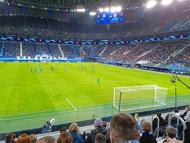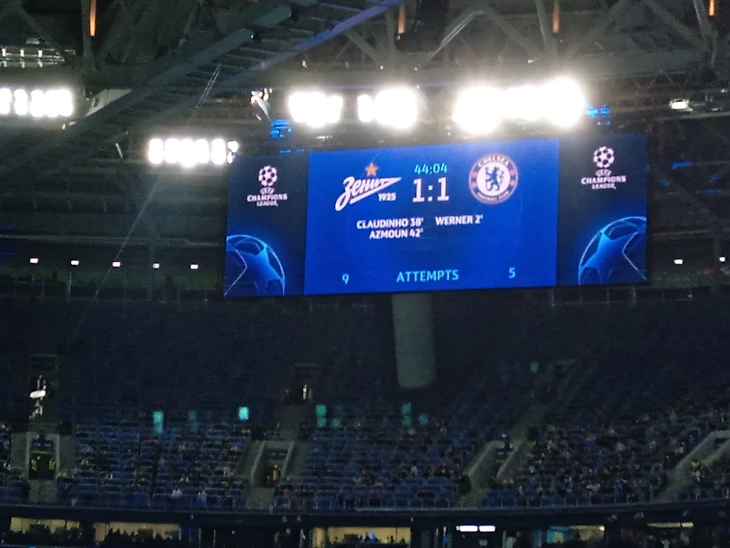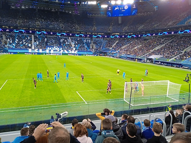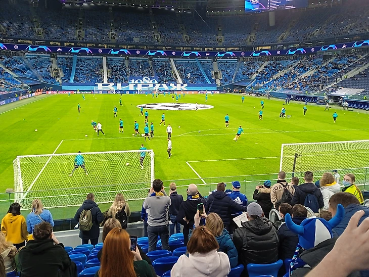 Когда вышли полевые, пробиться к стеклу было невозможно. Доносилось:"Лукаку, Маунт, Рюдигер, удачи, Челси, Алонсо"! Так можно было подумать, что находишься не на "Газпром-арене", а на самом "Стемфорд-Бридж".